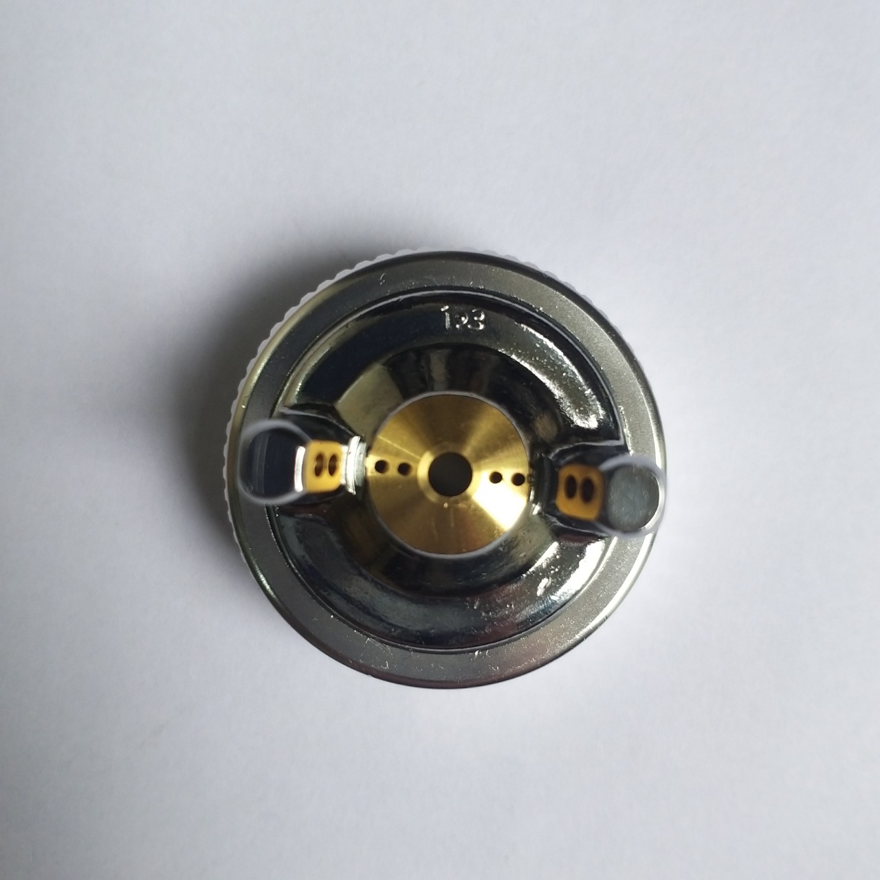Nắp chụp súng sơn Star SMV-1F có 08 lỗ gió xé tơi sơn cho bản rộng phun lớn trong khoảng 185-240mm